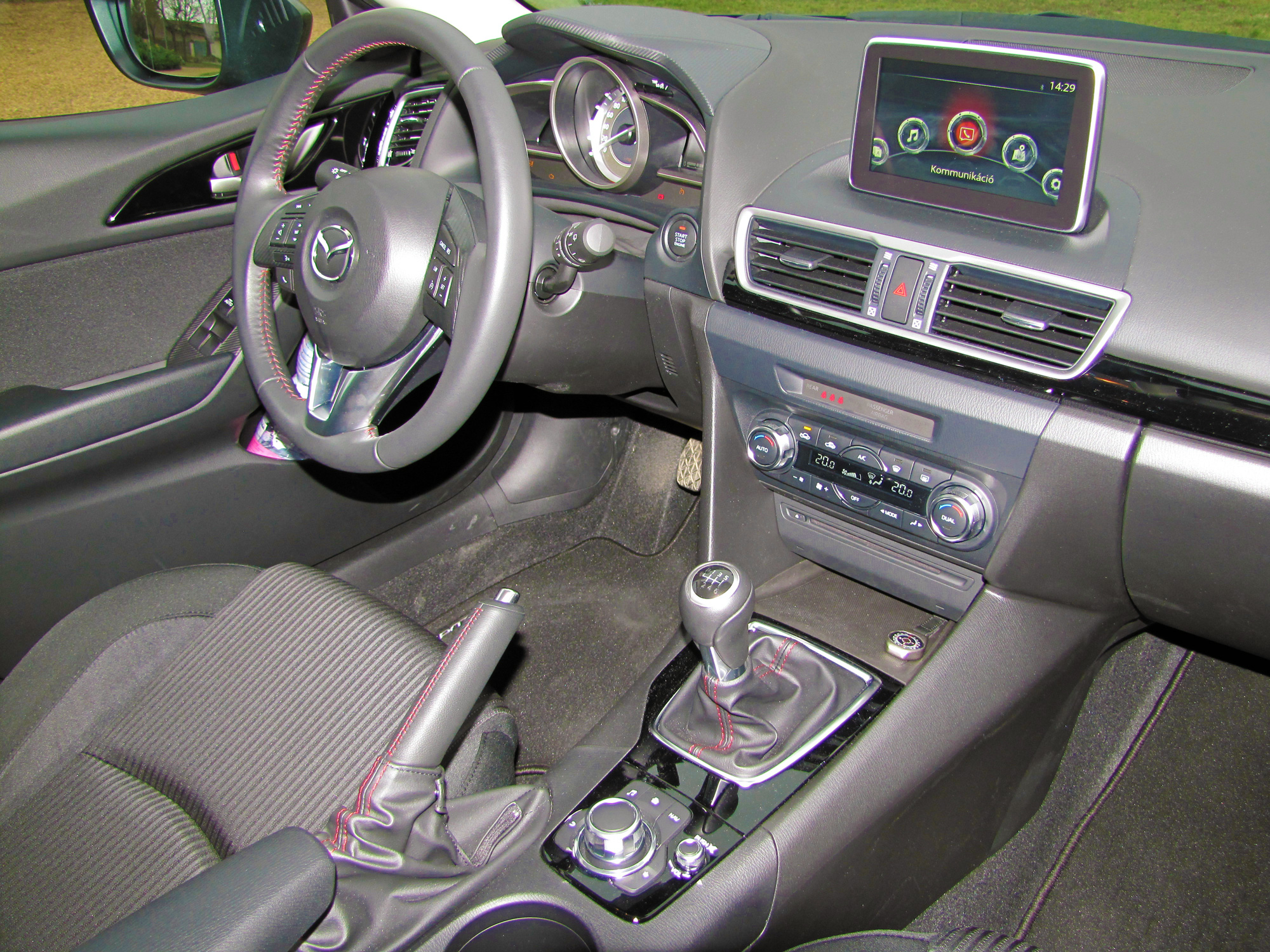 „Eddig a csomagtartó mérete is mindig elegendőnek bizonyult. Múltkor két, az átlagosnál nagyobb termetű kollégám utazott hátul, de még ők sem panaszkodtak a térkínálatra, kényelmesen elfértünk négyen. Egy másik, fiatal BMW-vel járó kollégám pedig elismerően nyilatkozott a műszerfal, illetve a belsőtér kialakításáról, minőségérzetéről. Dicséretekben egyébként sincs hiány, a múltkor a benzinkúton is megkérdezték, hogy én jöttem-e azzal a szép Mazdával. Nekem is nagyon tetszik, hogy amihez csak érek a belsőtérben a könyöklőktől a váltókarig, mindent nagyon kellemes tapintású, igényes anyag borít. A zongoralakk színű betétek is elegánsak, de sajnos már két hét után is látszódnak karcok ezeken, pedig nagyon vigyázok az autómra.” – számolt be Ede tapasztalatairól.