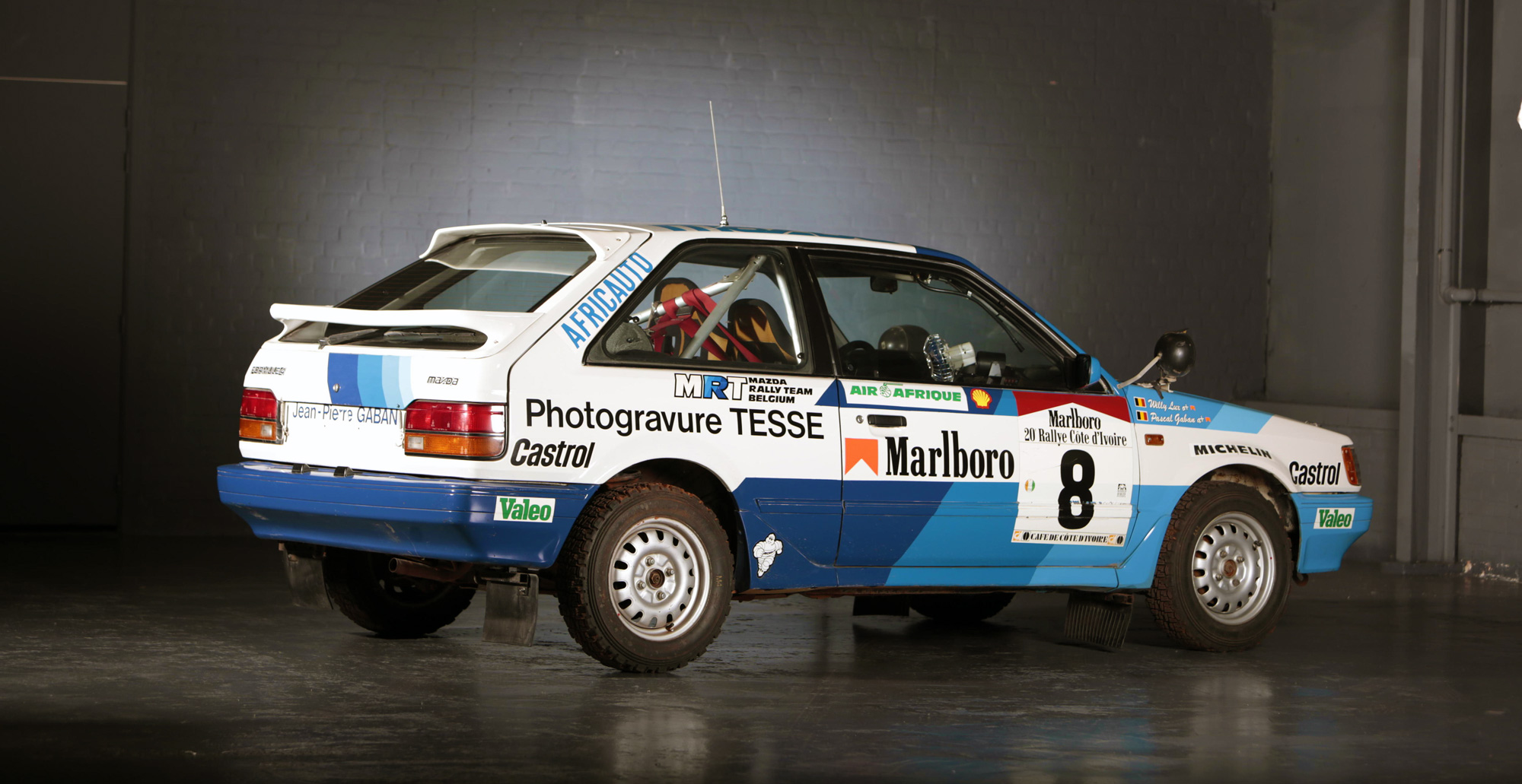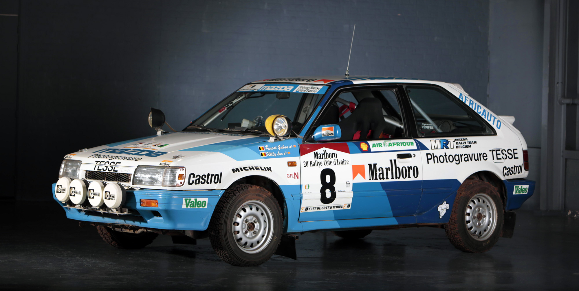 Pascal Gaban volt autóját előzetesen 6,3 és 9,3 milliós értékesítési ár közé várták a szakértők. Az eredetileg fekete autót a belga versenyző és szponzorai igényeinek megfelelően fényezték át. Persze ahogyan egy sportolónál, úgy ennél a versenyautónál is sokkal nagyobb jelentősége van az elért eredményeknek, mint az általános jellemzőknek. Nos, Pascal Gaban futamot nyert vele Görögországban, de egy elefántcsontparti első helyet is fel tud mutatni ez a 323. Eddigi tulajdonosa a Mazda belgiumi importőre teljesen rendben tartotta a versenyautót. Belső tere is teljesen épp, de működésképtelen állapotban bocsátották árverésre, mert az üzemanyag-szivattyúja nem működik. Talán éppen ezért kelt el a becsült ár alatt, 3,4 millió forintért!