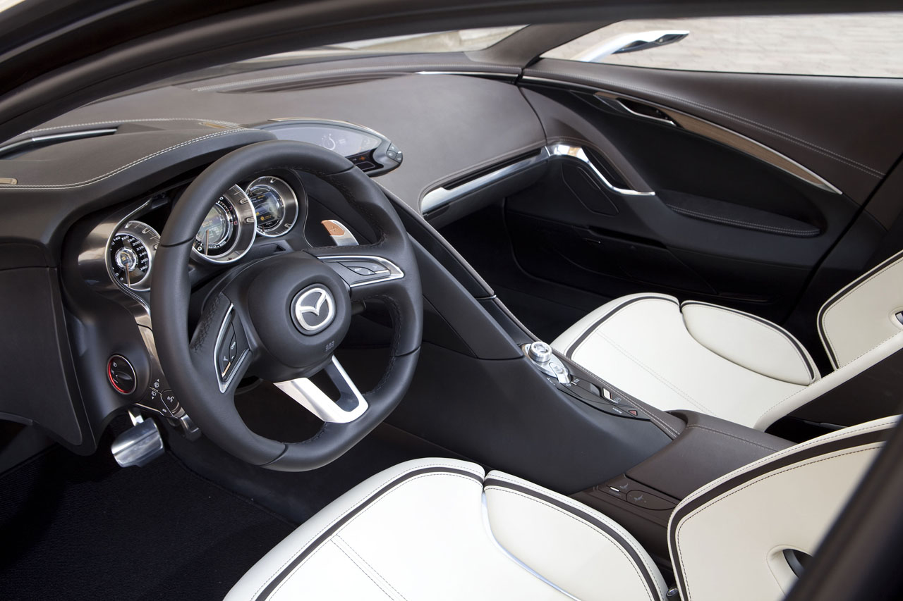 A Mazda tengerentúli szakemberei is rendkívülit alkottak, hiszen a Shinari belső terének motívumai tökéletesen követik a külső által diktált irányzatot. Első pillantásra feltűnik a sofőr köré tervezett műszercsoport és középkonzol egysége, amelyek elválasztják a vezetőt a sokkal szabadabb térérzetet sugalló utastértől. A lehető legergonomikusabb elrendezést hozták létre a „kormányos” számára, hogy mindent kényelmesen, és biztonságosan kezelhessen anélkül, hogy az a vezetési élmény rovására menne. Az itt megfogalmazott szemléletmódot ültette később gyakorlatba a Mazda3 új generációjában bemutatott MZD Connect és a HMI rendszer képében.