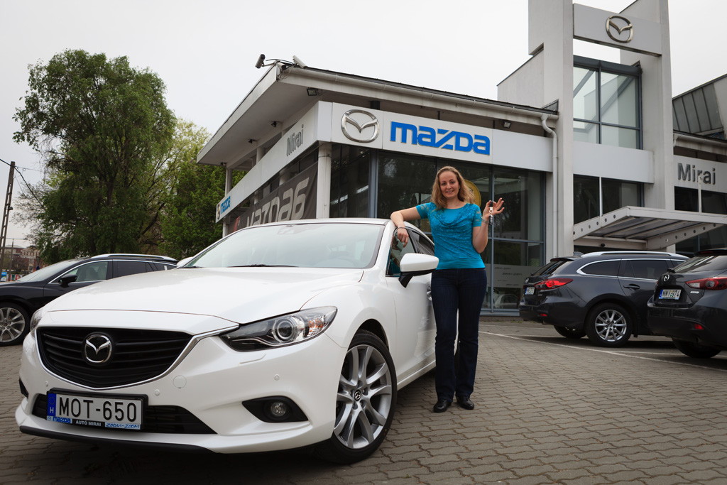Ezek után biztosan Ti is kíváncsiak vagytok, hogy egy ilyen tudatos rajongó merre indult a Mazda zászlóshajójával. Ritát az autó átvételére elkísérte egy fotós barátja (akinek ez úton is köszönjük a nagyszerű fotókat) és együtt indultak haza Szekszárdra, ahol első útjuk egy autómosóba vezetett. Erre azért volt szükség, mert főhősünk szerette volna megörökíteni magát az autóval és ehhez mindkettejüknek kifogástalan outfitre volt szüksége. A fotózás után Pécsre mentek, ahol csatlakozott hozzájuk néhány sportbíró barátnő, illetve versenyző, akik szintén élvezetesnek találták az autót. Természetesen a család sem maradhatott ki a „nyeremény” bemutatásából. Rita szülei és – BMW fanatikus – autószerelőnek tanuló öccse is elismerően nyilatkozott róla.