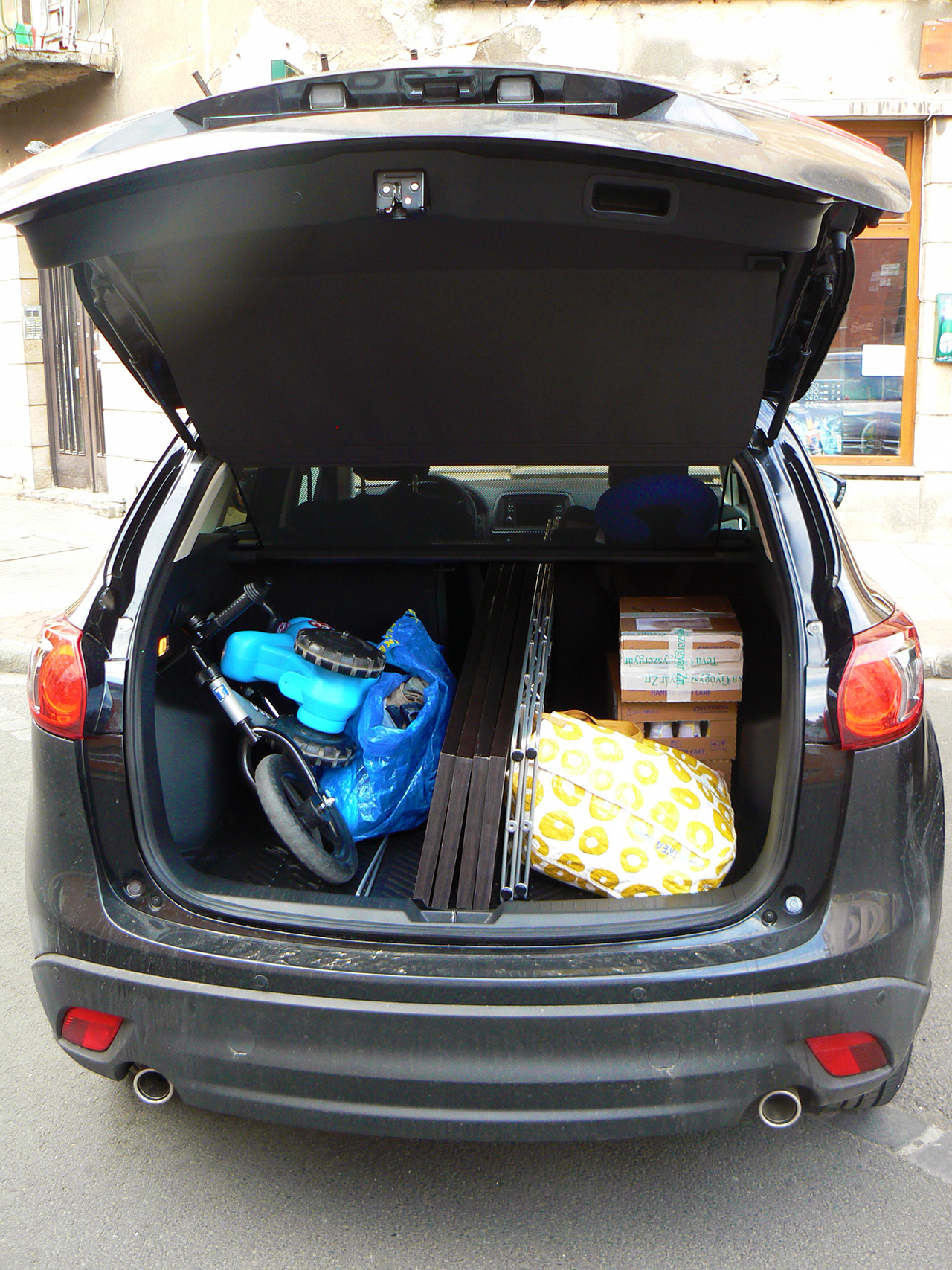Másnap irány a Dunakanyar, nézzünk körül arra is! Hogy mire is jó még egy ekkora autó: apósom megkért, hogy vigyünk ki neki egy könyvespolcrendszert. Hát a „karakuri” is jól vizsgázott CX-5-ben. A középső kis részt lehajtva a polcok is befértek úgy hogy a bent ülőket sem zavarták és még hely is maradt bőven a csomagtartóban a többi holminak. Bejártuk a börzsönyi részt és egységes álláspontja volt a család ezen részének is a túra után: a CX-5-tel élmény az utazás akár a nagyobb országutakon, akár a kis erdei utakon jár vele az ember.