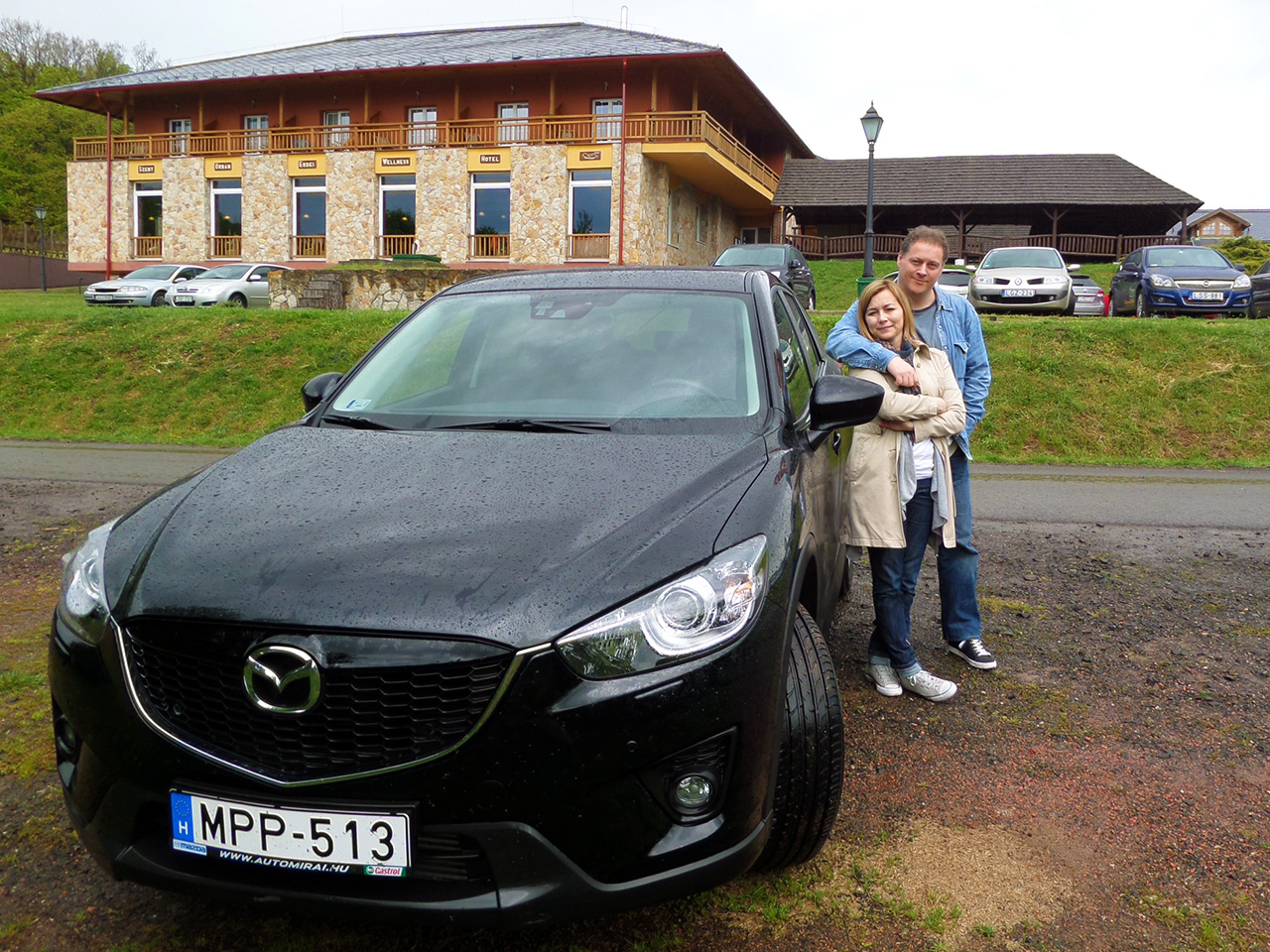 „Egy autós magazinnál dolgozó ismerősünk ajánlására vettünk egy Mazda323F típusú autót. A kérésünk – és a lényeg – az volt, hogy lehetőleg ne legyen vele gond és biztosan vigyen el oda, ahová szeretnénk. Ekkor ajánlotta a japán autókat, azon belül is a Mazdát. Az autó az első pillanatban megtetszett és ez a „szerelem” máig is tart. Ez után, 2006-ban megvettük életünk első új autóját, az akkortájt a piacra robbanó Mazda3-ast. Az autó azóta is hűséges, megbízható társunk, szervizbe a kötelező látogatásokon kívül még soha nem kellett vigyük. A Mazda3-as tehát változatlanul népszerű nálunk, de körülbelül egy éve felfigyeltem a CX5-re. Amióta Olivér fiunkkal már eggyel többen vagyunk, kicsiny családunkban egyre többször felmerül, hogy bizony – eddig ugyan bőven elég volt nekünk a Mazda3-asunk – elnézve az egyre csak szaporodó játék- és gyerkőckellék-állományt, egy nagyobb autó talán mégiscsak jobb és kényelmesebb választás lenne. Tulajdonképpen ekkor kacsintottak ránk az égiek: mi nyertük a lehetőséget, hogy egy egész hosszú hétvégén velünk legyen a teletankolt CX-5!