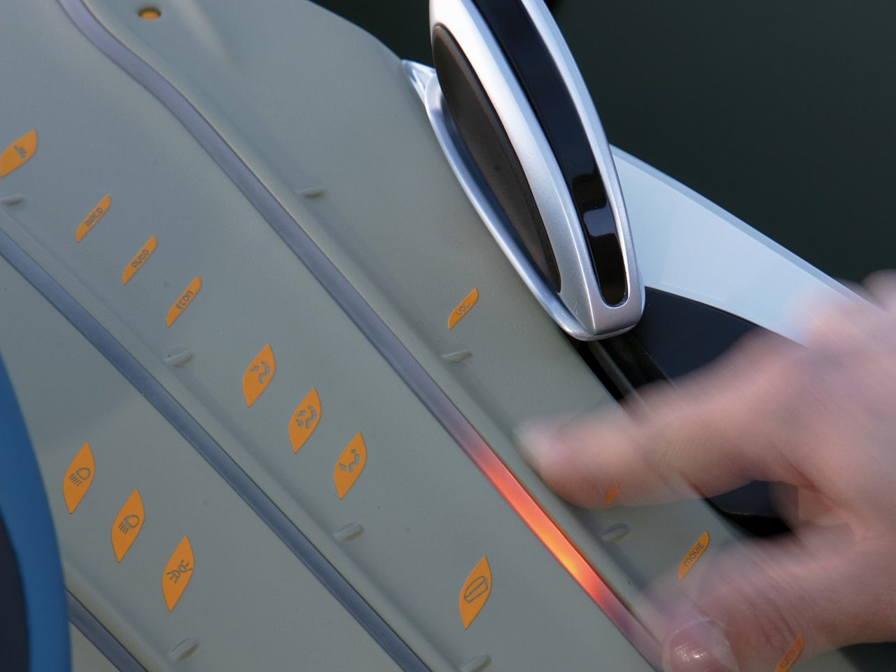 A kijelző alatt a mélyre helyezett kormánykerék közepe fix, a volán két oldalán a hagyományos műszerek kaptak helyet. A középkonzol gombjai három világító hullámvonal mentén helyezkednek el. Ide kell helyezni a vezető egyéni beállításait is elraktározó kulcshelyettesítő eszközt, amelynek jóvoltából például az otthon összeállított útvonalterv is feltölthető a navigációs rendszerbe. A helyére téve ugyanez az eszköz nem csak az indítókulcs, hanem az automatikus sebességváltó választókarjának funkcióját is ellátja. A mobiltelefonnak a kesztyűtartóban van a helye, hiszen a Bluetooth kapcsolat jóvoltából használata így a legbiztonságosabb. Ráadásul a vezeték nélküli töltőrendszer jóvoltából menet közben automatikusan töltődik az akkumulátora, csakúgy, mint a szintén itt tárolt bármely más elektronikus eszközé.