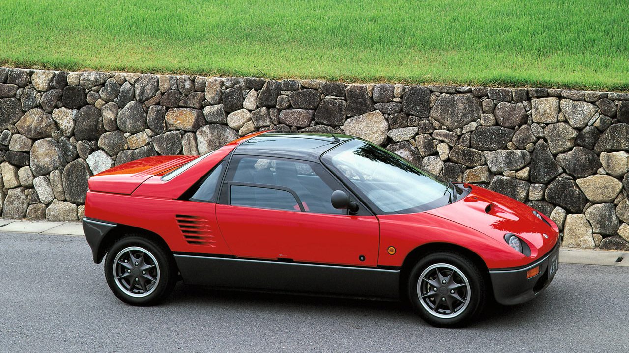 Sokat elárulnak az autó szélességéről a fűtés és a szellőzés kezelőszervei, amelyek függőlegesen kaptak helyet a középkonzolon. Ilyet sem látunk minden nap, igaz vízszintesen el sem fértek volna. Szintén egyedi megoldás az A-oszlopra helyezett kapaszkodó és az utasok fejei feletti két külön napfénytető. Persze mindennek megvan az oka: az AZ-1 ajtajai felfelé nyílnak! Az eredetileg az 1989-es Tokiói Autószalonon, tanulmányautóként három különféle változatban is bemutatott típust bizony sorozatgyártásúként is kívánatosra formálták a Mazda brit fejlesztőközpontjában. A japán gazdasági válság miatt azonban az 1992 és 1995 között árusított csöppség mégsem vált slágertermékké, még a kei-car kategóriában sem. Összesen csupán 4392 példány kelt el belőle, így ez a legritkább kei-car sportautó, és ebből csak száz darab volt Mazdaspeed kivitel.