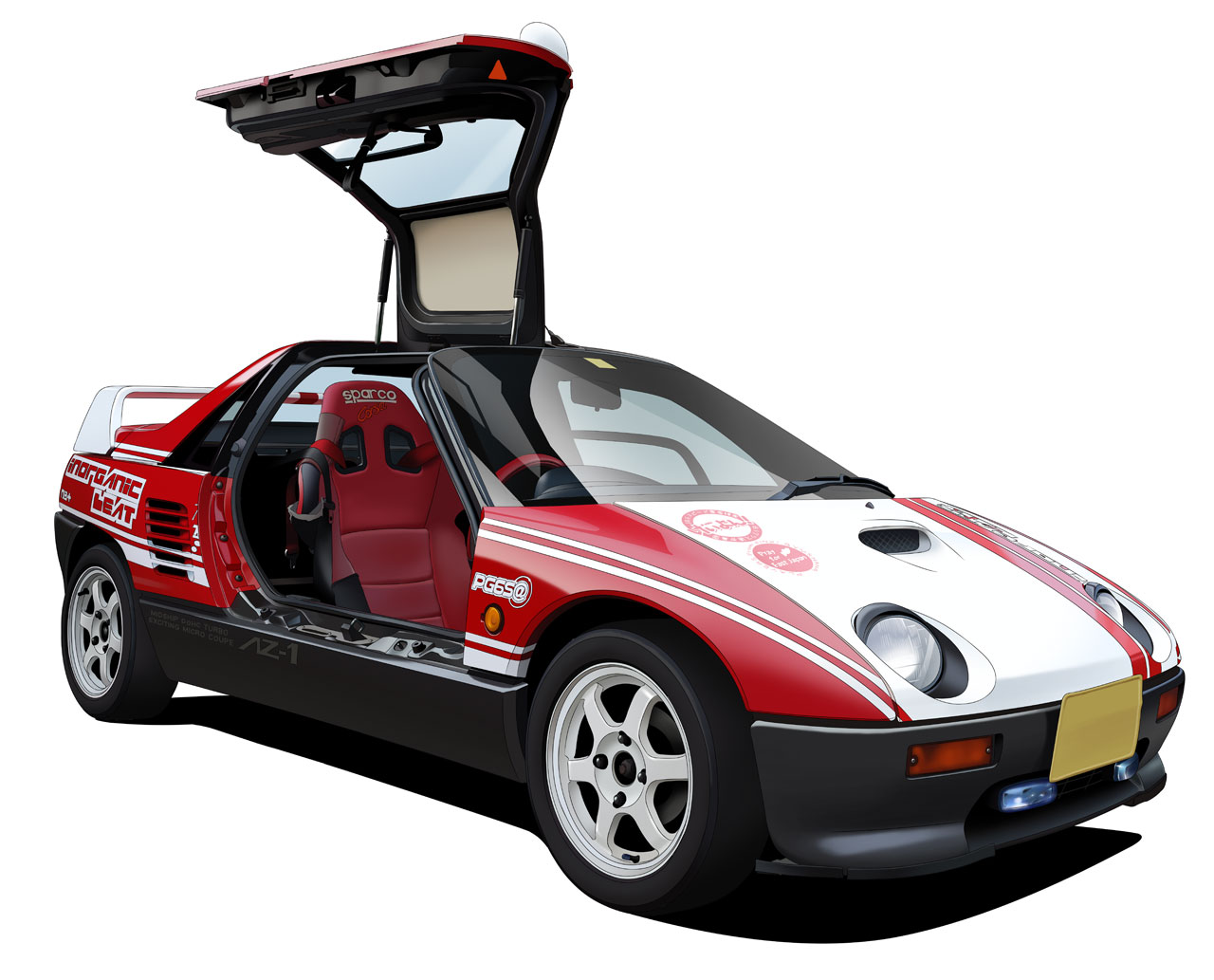 Bizony, több száz lóerővel egészen biztosan jobban gyorsul és ádázabbul vágtat egy nagyobb sportkocsi, mint 63 – igen, hatvanhárom – lóerővel az AZ-1. Ám ugyanakkor garantáltan több meló is van vele, mint egy ilyen alig több mint hétszáz kilós csöppséggel, amely persze 63 lóerővel is vígan vágtázik. Pláne, hogy ezt a teljesítményt egy 660 köbcentiméteres, turbófeltöltős benzinmotor szolgáltatja, és ez akár tízezres fordulatszámon is elketyeg. Emlékezetes élmény lehet, annyi bizonyos. Minderre rátesz egy lapáttal az autó méretéből adódó élményfaktor, hiszen az AZ-1 egy igazi kei-car. Ez pedig Japán leggazdaságosabban üzemeltethető személyautóinak gyűjtőneve, amelynek tagjai szigorú előírások betartásával érdemelnek jelentős kedvezményeket. A motor méretére és teljesítményére vonatkozó felső határokat teljes egészében kihasználta az AZ-1, ugyanis egy kei-car erőforrása legfeljebb 660 köbcentiméter lökettérfogatú és maximum 63 lóerős lehet. A kei-car hosszúsága nem haladhatja meg a 3,4 métert, szélessége az 1,48 métert, magassága pedig a két métert. Továbbá legfeljebb négyszemélyes lehet és maximum 350 kilogramm terhelhetőségű. Az Autozam kétüléses sportkocsija viszont csak alig 3,3 méter hosszú és 720 kilogramm tömegű.