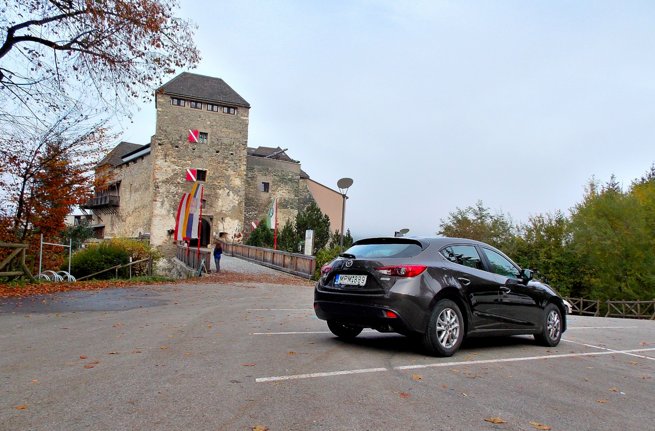 „A Mazda pontosan és megbízhatóan működő gyári navigációs rendszere ezúttal is jó szolgálatot tett. Kifelé menet a végcélunkhoz közeledve még az autópályán riasztott az Ausztriában működő forgalomfigyelő funkció, hogy torlódáshoz közeledünk. Ezzel együtt felajánlott egy alternatív útvonalat, amelyet elfogadtunk. Ennek köszönhetően fedeztünk fel Kapfenbergben egy szép, hangulatos kis várat, amelyet hazafelé meglátogattunk. A kertjében még egy madárröptető bemutatót is megtekinthettünk, sólymok és más ragadozó madarak mutatványait csodálhattuk meg. Így szó szerint egy újabb élménnyel ajándékozott meg a Mazda3.” – mondta elégedetten Barátunk.
