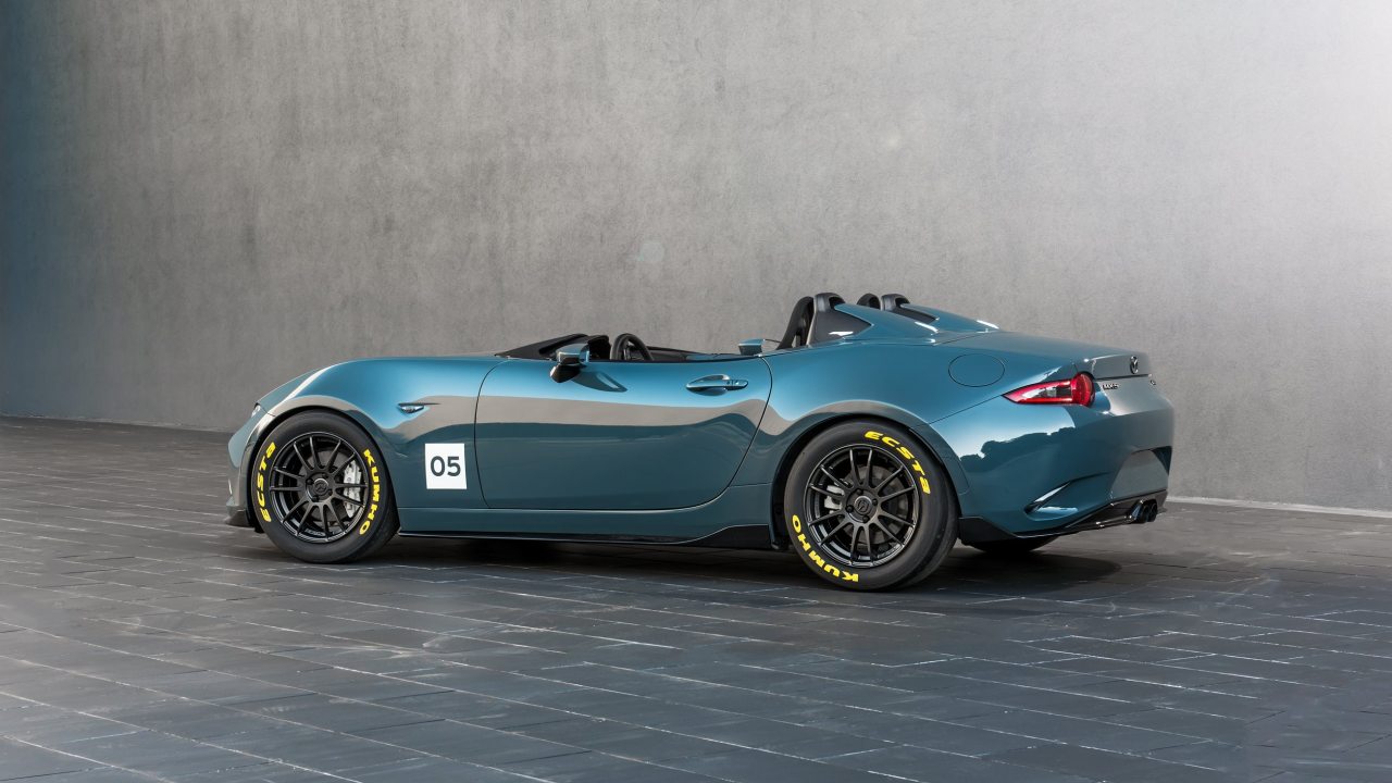Az MX-5 Speedster könnyű RAYS 57 Extreme Gram Lights könnyűfém keréktárcsáira 225/50 R16 méretű abroncsokat húztak