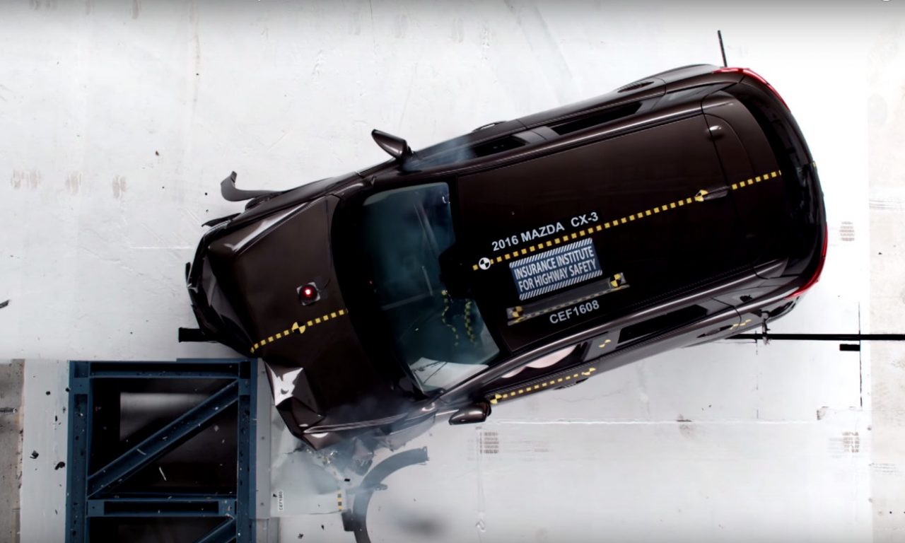 A Mazdánál előszeretettel építenek könnyű autókat, de mint ez az IIHS teszt is mutatja, ezt nem a biztonság rovására teszik, éppen ellenkezőleg. A felhasznált könnyű, de rendkívüli szilárdságú acélok, a gondosan kialakított szerkezetek, a jól összehangolt biztonsági berendezésekkel még növelik is a Mazdákban utazók biztonságát.