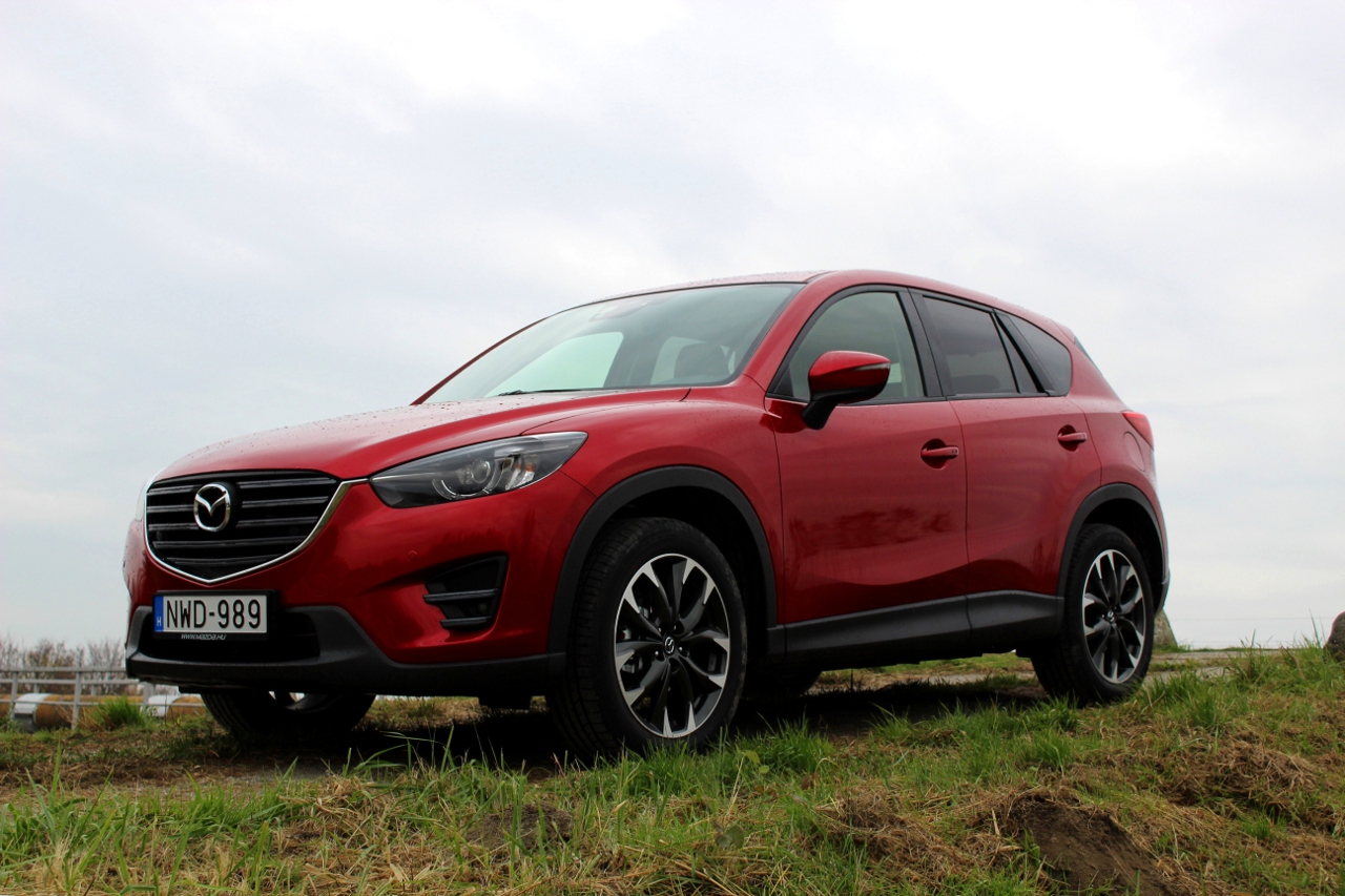 Már 8 600 000 forinttól hazavihető egy Takumi felszereltségű CX-5! Pont egy ilyen változatot próbáltunk, amelyben a kétliteres, benzines Skyactiv motor dolgozik, az első kerekeket hajtva, hatfokozatú manuális sebességváltó közreműködésével. A Skyactiv motor nagyszerűségét már sokszor kitárgyaltuk, és továbbra sem férhet hozzá kétség, hogy igazi unikum a mai, turbófeltöltés őrülettől vezérelt világban. Szinte néma csendben végzi a dolgát, egyenletesen érkezik a teljesítmény, nem érződik a turbós motorok „rúgása”, ám mégis képes sportos hangulatot kelteni, hiszen a 165 lóerő könnyedén mozgatja a nem egészen 1500 kilogrammos testet. Ahogy korábban már említettük, kellemes meglepetés a futómű hangolása, egy pillanatig sem éreztük a magas építésmódból következő dőlési hajlamot, igazán élvezetesen lehet a Pilis útjain vadászni a kanyarcsúcspontokat. Persze ezt az autót nem erre tervezték, sokkal fontosabb a „telekjáró” képessége. Könnyebb, vízszintes terepen a kétkerék-hajtású változat is elegendő, ám a hegyvidéki lakhellyel rendelkezőknek inkább az összkerékhajtású változatokat ajánljuk.