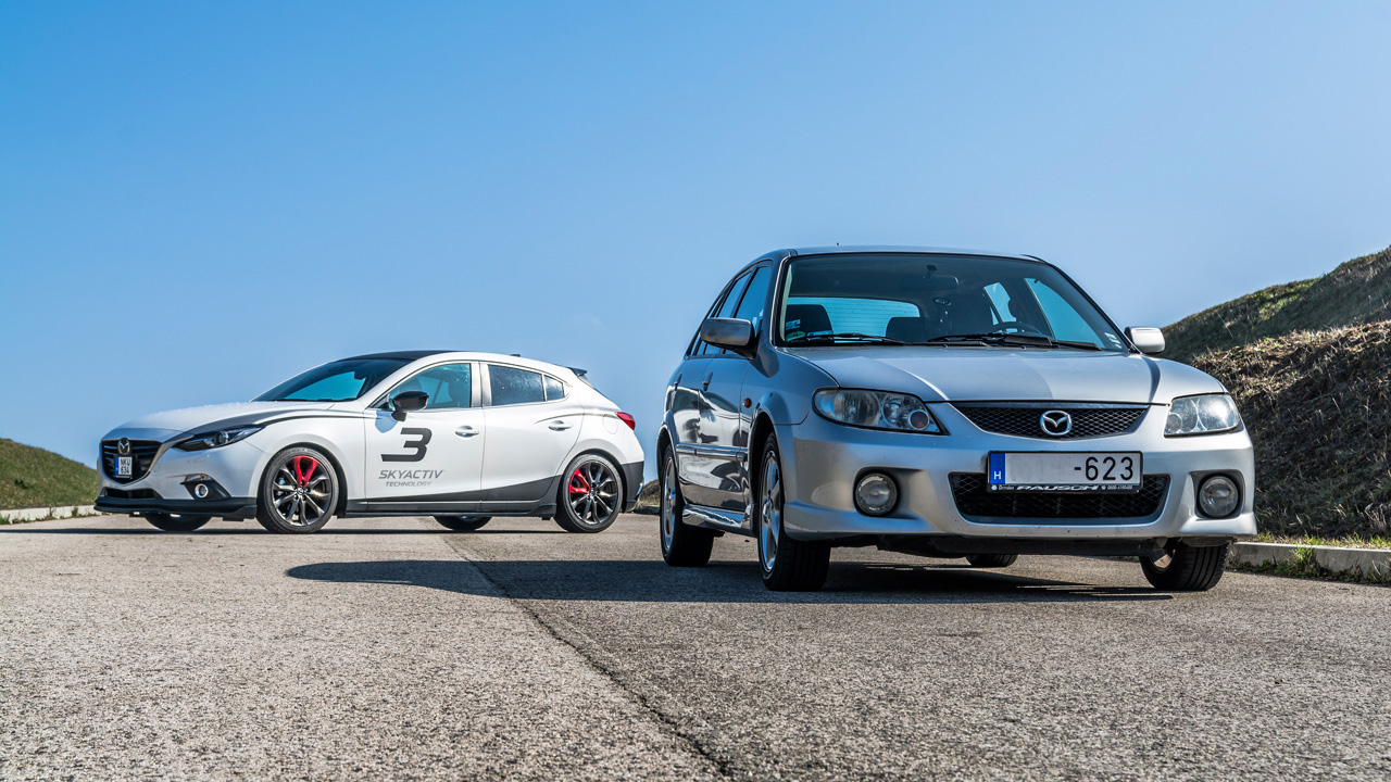 Tizenöt esztendő hosszú idő – főleg a gépjárműiparban, ahol gyakorlatilag ez két teljes modellciklust jelent. A 2016-os dobogónk harmadik helyén álló cikkünkben egy X-Tomi által újraértelmezett Mazda3 G165 és egy szintén különleges Mazda 323 F Sporty kivitelt hasonlítottunk össze. A sok hasonló paraméter mellett azt is megmutattuk Nektek, hogy mennyire eltérő karakterek – nem csoda, hogy ennyire szerettétek olvasni.
