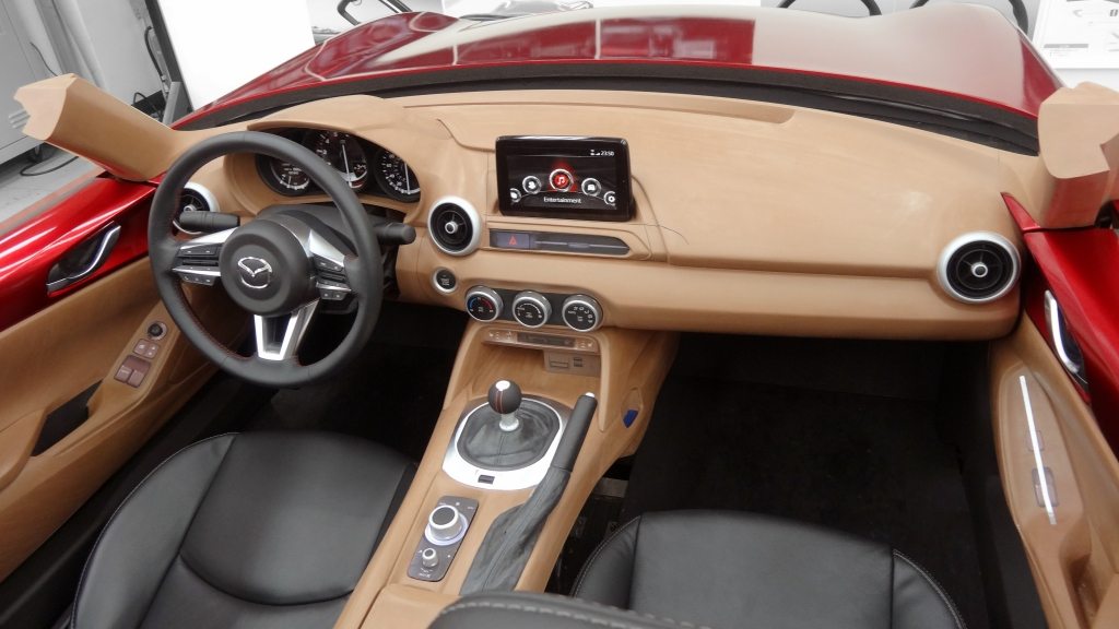Akárcsak az első MX-5 esetében, kezdetben a negyediknél is párhuzamosan dolgoztak a Mazda japán, amerikai és európai tervezőcsapatai az ideális forma megvalósításán. Mindegyik csapat több ötlettel is előállt. Végül egy amerikai és egy japán változatot finomítottak tovább a formatervezők. Utóbbi megjelenése jobban utalt az eredetire, szemben az élesebb vonalakkal tagolt tengerentúli tervre. Érthető, hogy e kettőt gyúrták egybe, hiszen az USA az MX-5 legnagyobb piaca. Azonban fejtörést okoztak még a fényszórók, amelyek az első MX-5 orrán „elbújtak”, ha nem világítottak. A negyedik nemzedéknél e megoldás visszatérését kizárták a tervezők. Egy különleges újfajta LED alkalmazásával viszont sikerült az eredetire utalóan keskeny fényszórót megvalósítani. Ezt követően az utastér esetében is együtt dolgozott a japán és az amerikai csapat, a fő célkitűzések mentén: a belső illeszkedjen a külsőhöz, a műszerfal legyen egyszerű, sallangmentes, könnyed vonalvezetésű és vezetőorientált. A végeredmény pedig magáért beszél. A legújabb MX-5 sikerét mutatja, hogy ez az egyetlen típus, amely A Világ Év Autója és A Világ Év Autódizájnja díjat is nyert ugyanabban az évben.