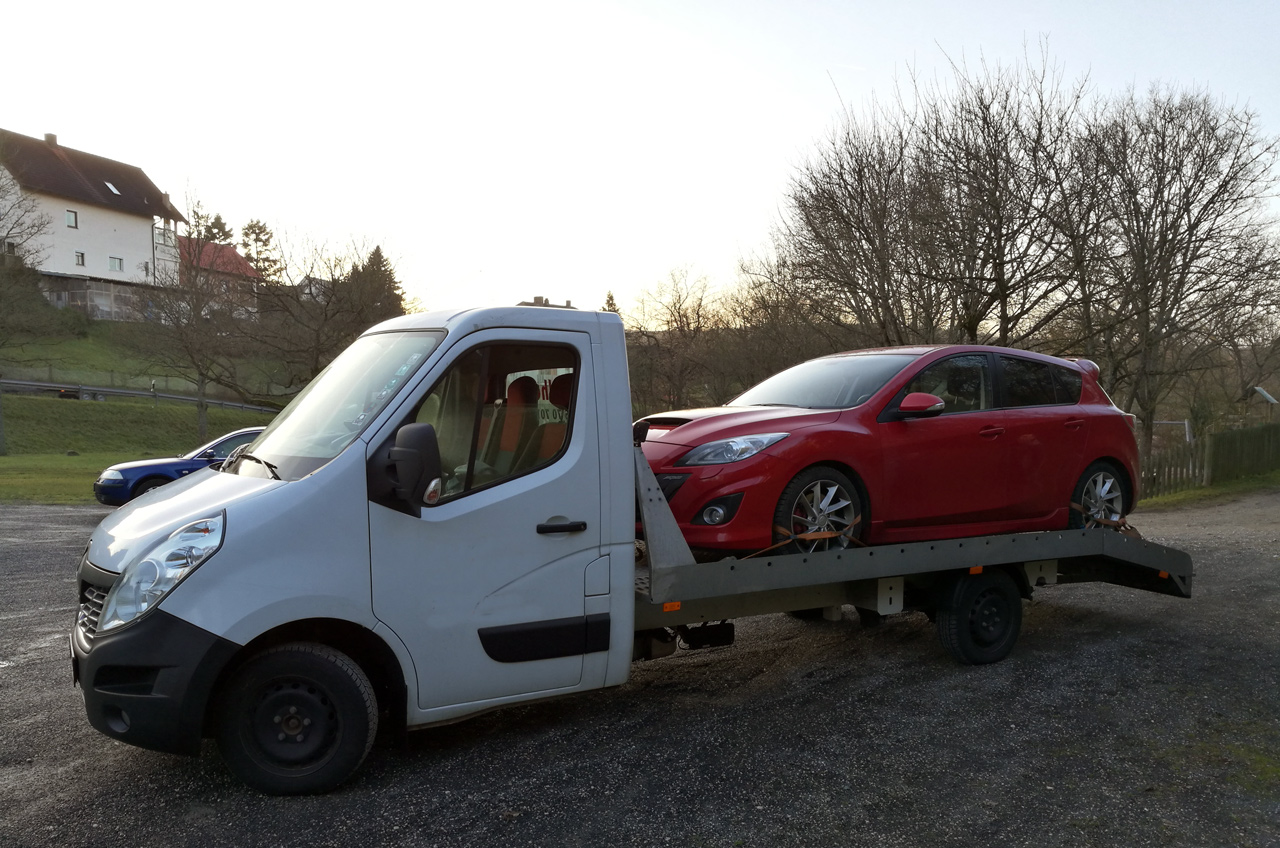 Korábban mindkét másik Mazdát lábon hoztuk haza, most azonban mindent összeszámolva gazdaságosabbnak tűnt autószállítót bérelni. Az MPS után elég csinos adót kell fizetni Németországban, ha az ember jogszerű „piros” rendszámot szeretne. Az Euro 5 környezetvédelmi besorolás ugyan mérsékel ezen, de ha a szükséges többi költséget és az üzemanyagárakat is hozzászámoljuk egyértelműen az autószállító volt a gazdaságosabb megoldás. Persze volt bennem némi félsz, hiszen most először indultam autóért magánszemélyhez, de a helyszínre érkezve gyorsan megtaláltam a kiszemelt autót és átnéztem mielőtt telefonáltam volna a gazdának, hogy megérkeztem. Így biztos lehettem benne, hogy hidegindítást kapok és nem előre felkészített autóval kell szembesülnöm. Az indítás és a rövid próbaút is problémamentes volt, így úgy döntöttem autóval a „hátamon” indulok haza. Alkudozni már nem volt képem, hiszen nagyon mélyen a piaci ár alatt volt a BL MPS. Mint kiderült, ennek az volt az oka, hogy az eladó épp akkor akart belevágni a Bitcoin-kereskedésbe és szüksége volt némi kezdőtőkére. Szegény, ha tudta volna, hogy onnan is megy még lejjebb a kriptovaluta árfolyama, lehet, hogy másképp dönt…