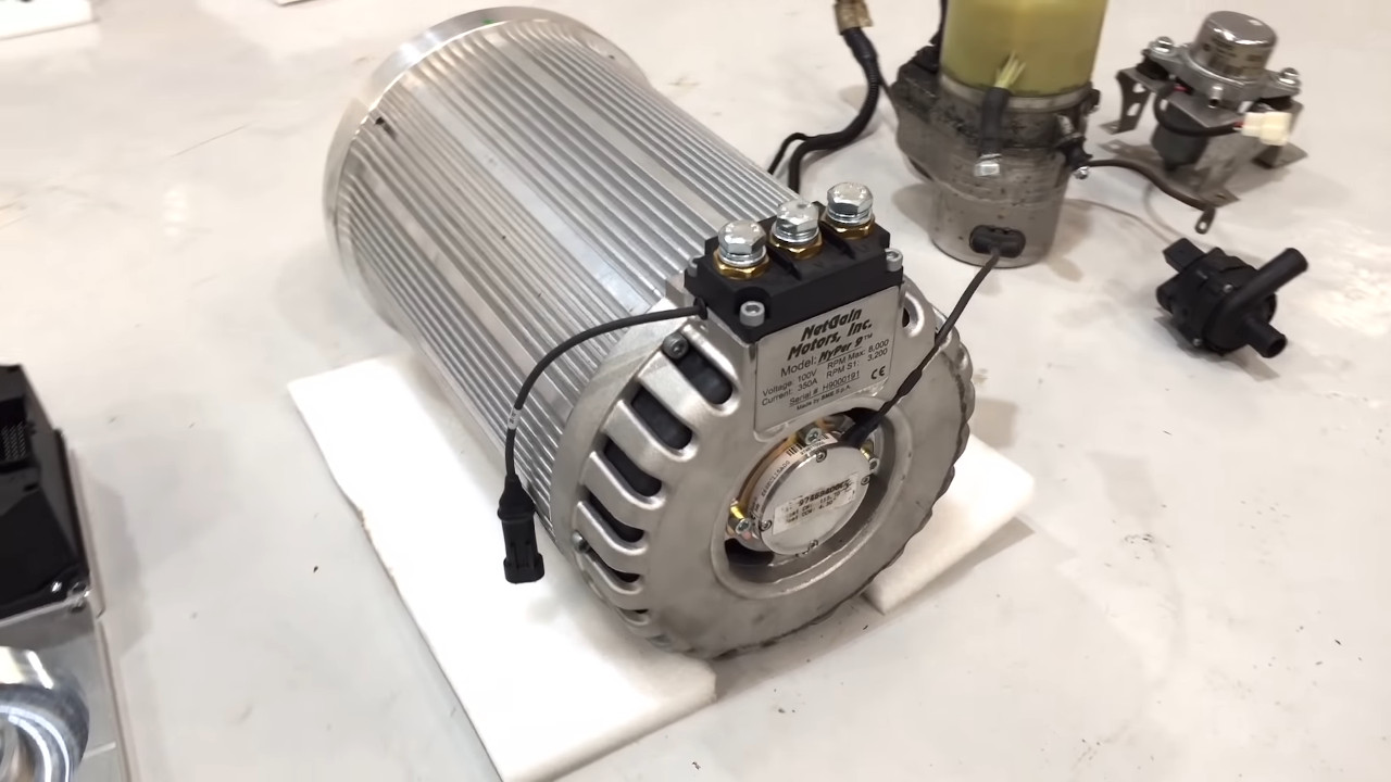 A Netgain Hyper9 villanymotor 88 kilowattos (120 lóerő) teljesítménye közel gyári értéket produkál, a hatalmas különbséget az állóhelyzetből rendelkezésre álló 220 newtonméter – 1,6 literes 134Nm, 1,8-as pedig 168Nm – forgatónyomaték jelenti. A 100 volt névleges feszültségű – legfeljebb 132 volt – léghűtéses villanymotor egy fix, 1,8:1 áttételű fordulatszámcsökkentő hajtóműhöz kapcsolódik, és a tervek szerint tökéletesen elférnek az egykori sebességváltó helyén. Az elektromos szervószivattyú egy Vauxhallból – az Opel angol leányvállalata – származik. Belsőégésű motor hiányában a fékrendszer vákuumpumpáját is egy elektromos egységgel kellett helyettesíteni. Az erősebb, 7 colos tányérkerékkel felvértezett hátsó „diffi” igény esetén mechanikus, részlegesen önzáró differenciálművel is felszerelhető. Az áttételt hosszabbra – 4,1:1-ről 3,6:1-re – cserélik, hogy jobban harmonizáljon a nyomatékos villanymotorral.