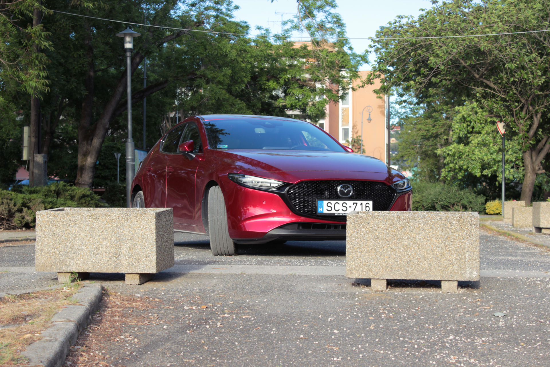 Nem mehetek el szó nélkül az adaptív Matrix LED fényszóró mellett sem. Azt sem bánom, ha diktátornak neveztek, de én ezt az extrát kötelezővé tenném minden közúton közlekedő gépjármű számára! Tudom, hogy a H4-es, sárgafényű viharlámpákkal is lehet látni valamit az útból, de amit a Matrix tud, arról a névrokon sci-fi jut az eszembe. Automatikus üzemmódban olyan bravúrosan, olyan precízen kezeli a pokolian erős fényét, hogy az parádés. Anélkül, hogy a szembejövőket, vagy előttünk közlekedőket elvakítaná, szinte ecsettel festi világosra a sötét foltokat. Mindig úgy és oda világított, ahová szerettem volna, csak az igényeim tudatosulásánál lényegesen gyorsabban. Nem titkolom, hogy a tesztidőszak végére elfogulttá váltam. Mentségemre szóljon, hogy az új Mazda3 objektíven vizsgálva is az egyik, ha nem a legjobb jármű az alsó-középkategóriában.