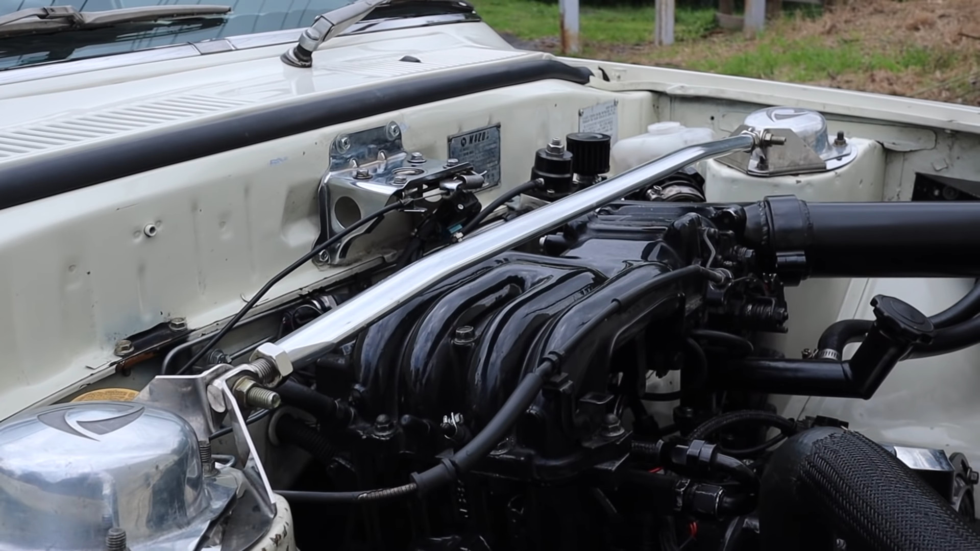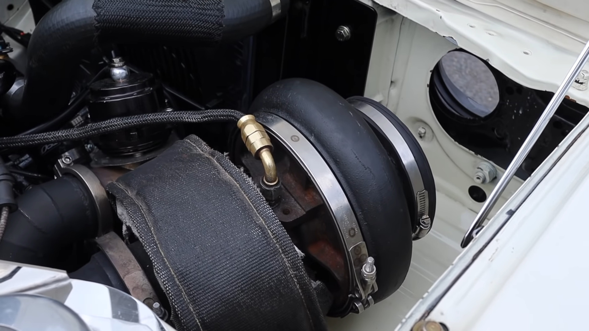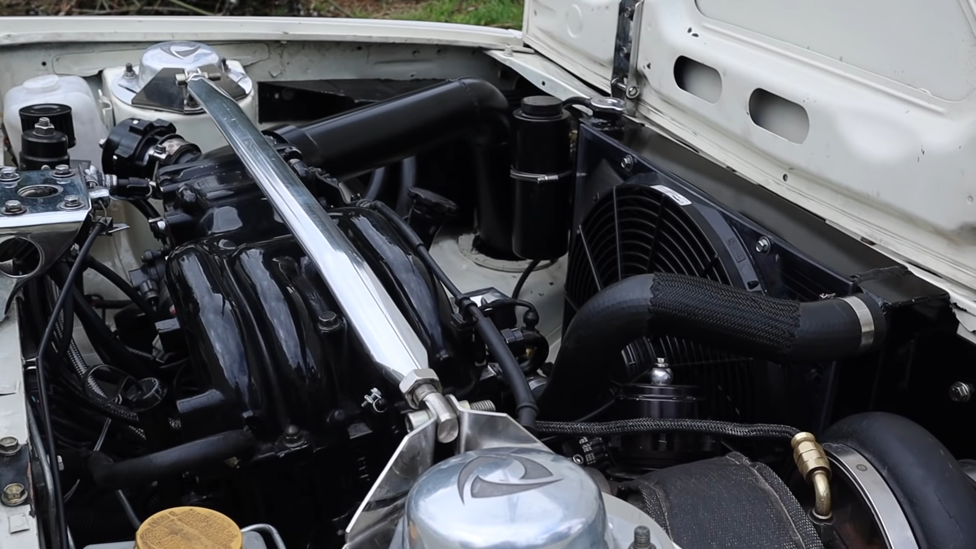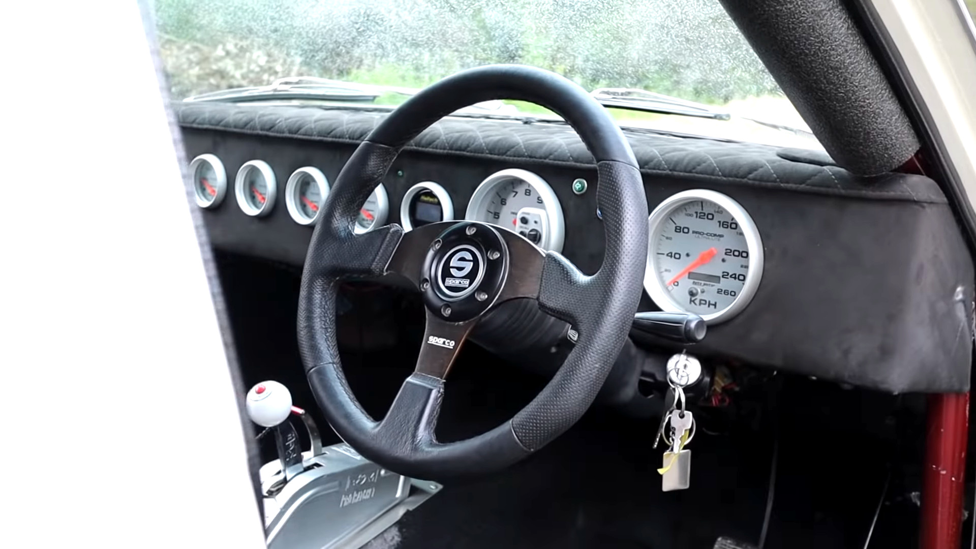 Rémisztő, ha belegondolunk, hogy az 555 lóerőnek bőven egy tonna alatti tömeget kell mozgatnia! A negyedmérföldet 9,14 másodpercen belül abszolválja, miközben óránként 148 mérföldes, 238 kilométeres sebességre katapultál. Bőven megvan benne a képesség, hogy „nyolcas” időket fusson. Nem meglepő, hiszen akkora Bullseye turbófeltöltővel lélegzik, ami Yoshimasa Sugawara Dakar-ralis Hino versenyteherautójának is becsületére válna. Az eredeti hajtáslánc természetesen nem tudna megbirkózni a sokszoros forgatónyomatékkal, valamint közel ötszörös teljesítménnyel. Így aztán egy gyorsulási versenyekre felkészített háromfokozatú Ford C4 automatikus váltó, valamint egy Dominator nyomatékváltó továbbítja a forgótárcsás motor „erejét” hátulra. Nem maradt érintetlen a laprugókon nyugvó hátsó merevtengely és a kilenccolos differenciálmű sem, gyakorlatilag minden alkatrészt nagyságrendekkel erősebbre cseréltek. Azonban nem durrogtatjuk el az összes petárdát, inkább nézzétek meg a hangulatos kisfilmet. Jó szórakozást kívánunk!