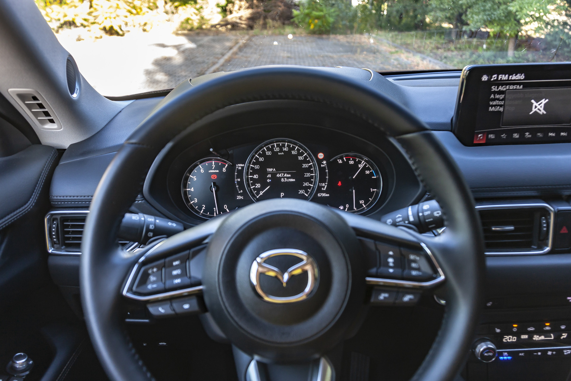 A túlbuzgó hozzáállás viszont az egész autóra jellemző. Ahogy korábban az új Hármas esetében is, a városi fékasszisztens egy alkalommal úgy gondolta, hogy „besegít” a CX-5 állóra fékezésébe. Idős utasaink igencsak meglepődtek a brutális fékerőn. Persze vitán felül áll, hogy jelentősen hozzájárul a balesetmentes közlekedéshez, és a rendszer ezentúl éjszaka is felismeri a járókelőket. Parádésan tette a dolgát az adaptív tempomat is, egy alkalommal Nagymarosról hazafelé egy hosszabb szakaszon rábíztuk a „vezetést”. Természetesen a figyelmünk nem lankadt, azonban szomorúan kellett nyugtáznunk, hogy nemhogy nem kellett beavatkoznunk, de precízebben tette a dolgát, mint mi. Figyelmet érdemel még az új G-Vectoring Control Plus rendszer is, ami elsősorban kanyarokban fokozza az irányíthatóságot, valamint stabilitást. Azonban a Mazda CX-5 futóműve annyira kiegyensúlyozott és olyan bőséges tartalékokkal rendelkezik, hogy egy közepesen megfontolt járművezető még a számtalan hárombetűs biztonsági háló nélkül sem tudná kihozni a sodrából.