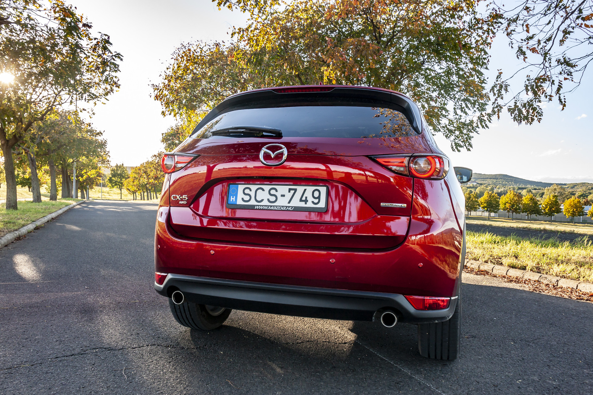 Az idei esztendőben felfrissített SUV egyik legnagyobb újdonsága a „terepjáró mód”. Elsőre kicsit nagyképűen hangzik, terepjárós emberek számára másodikra is. Természetesen az átprogramozott kipörgésgátlóval sem mi nyerjük majd a triálbajnokság sziklamászás kategóriáját, azonban ezentúl a hétköznapokban előforduló terepes feladatokat sokkal magabiztosabban teljesíti a CX-5. A Takumi felszereltségtől felfelé járó 19 collos könnyűfém keréktárcsákra húzott 225/55 r19 méretű gumiabroncsok amúgy sem támogatják a terepjárást. A 193 milliméteres (17-es kerekekkel 185mm) szabad magasság viszont tisztességesnek mondható a szabadidő-autók között. Első fokozatban a motor 258 newtonméteres forgatónyomatékának 16,4-szerese jut a kerekekre, ezt a hidrodinamikus nyomatékváltó – Wandler – tovább növeli. Elengedhetetlen olyan terepviszonyok között, amikor a jármű védelmében lépésben kell haladnunk, mégis a legnagyobb vonóerőre van szükségünk. Persze akkor is hasznát vesszük, amikor a kéttonnás pótkocsit felvonszoljuk a meredek emelkedőn.