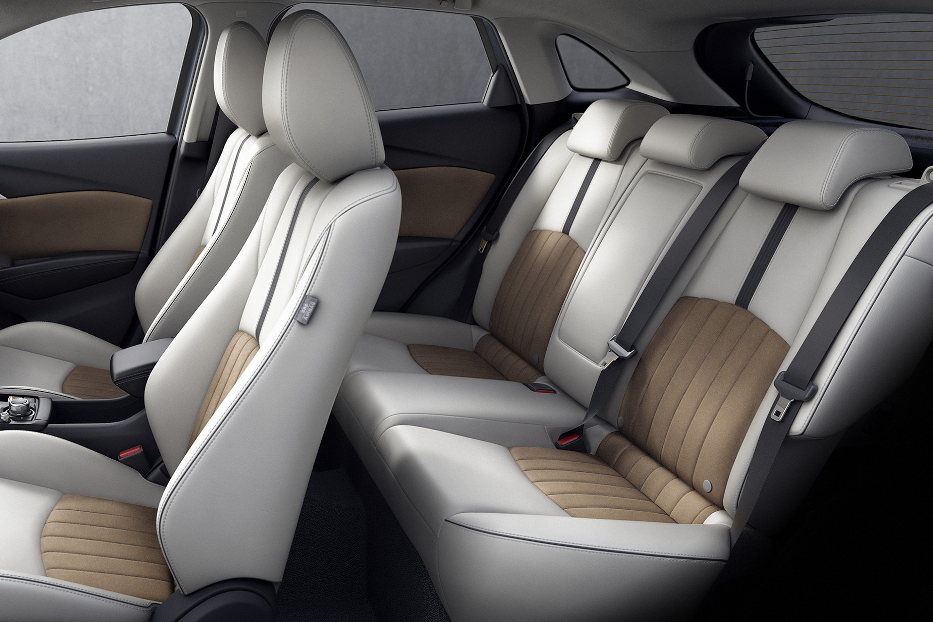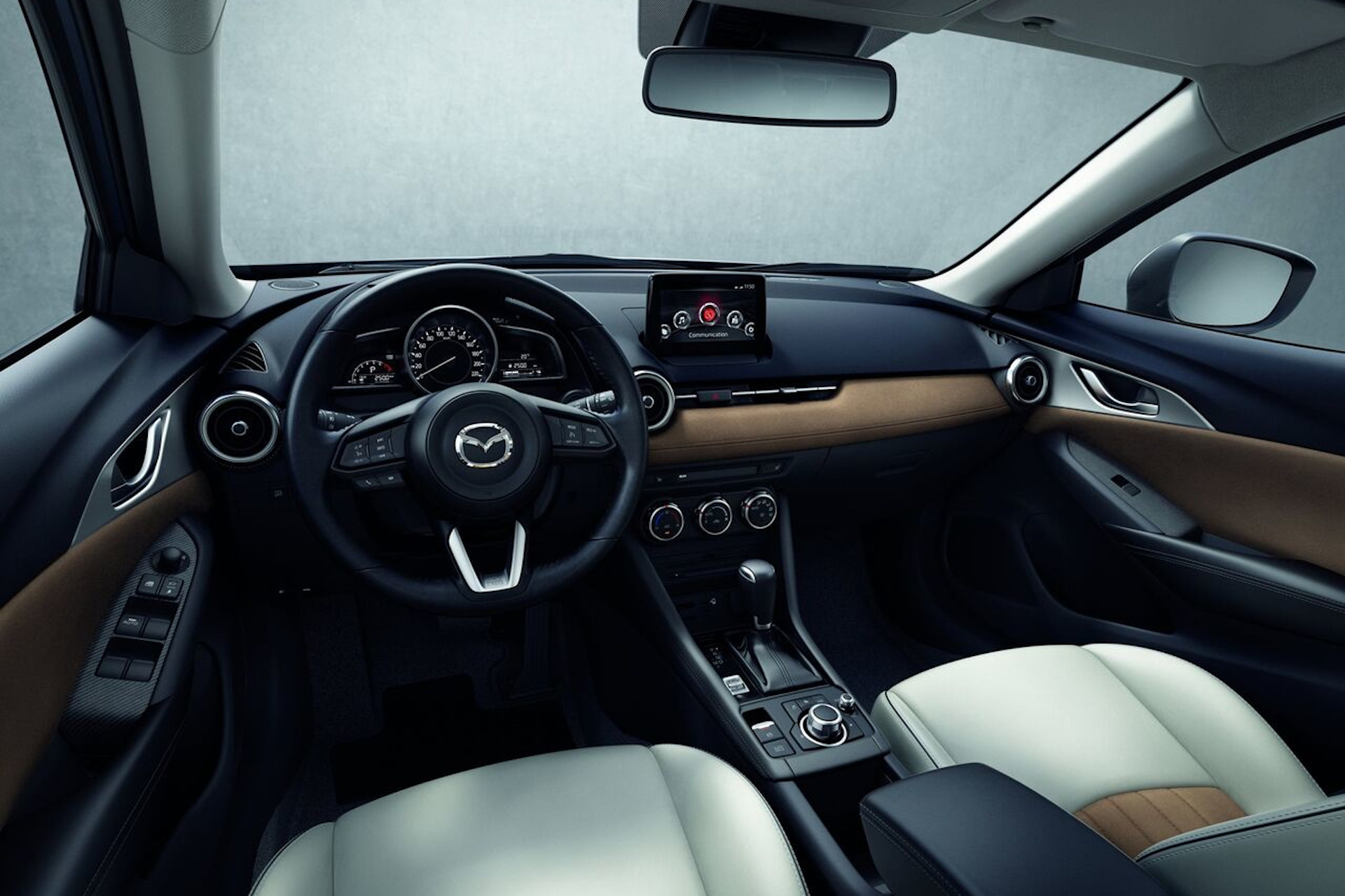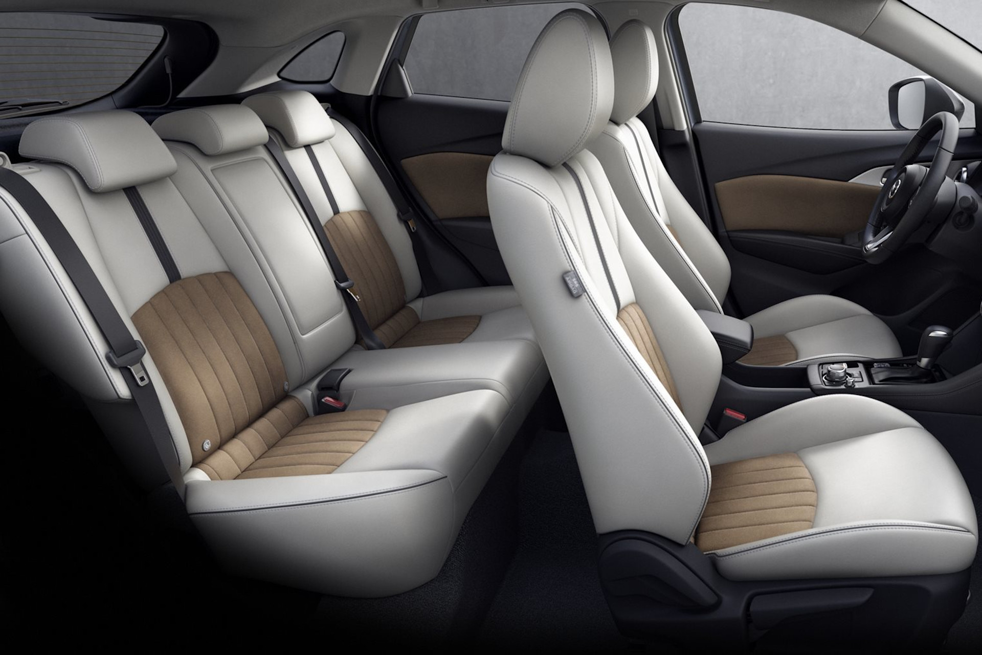 Különleges, az otthon meleg hangulatát idéző, fehér és bézs árnyalatú bőrbevonatú belső térrel gazdagodott a CX-3, a Mazda legkisebb szabadidő-autója. Egyben felfrissülve és az eddigieknél is hatékonyabban várja a következő esztendőt. A Mazda CX-3 Takumi Plus rendkívül elegáns világos belső terét a puha tapintású, szarvasbőrt idéző bézs bőrbetétek koronázzák meg. A barokk zene egyik legfontosabb stílusjegyéhez hasonlóan, ellenpontként egészítik ki a megújult CX-3 ébenfekete külső elemeit is. Szívdöglesztőek a 215/50 R18 méretű gumiabroncsokkal felvértezett fegyverszürke, könnyűfém keréktárcsák, de új dizájnelem a fekete hűtőrács, valamint a visszapillantó tükrök ébenfekete háza is.