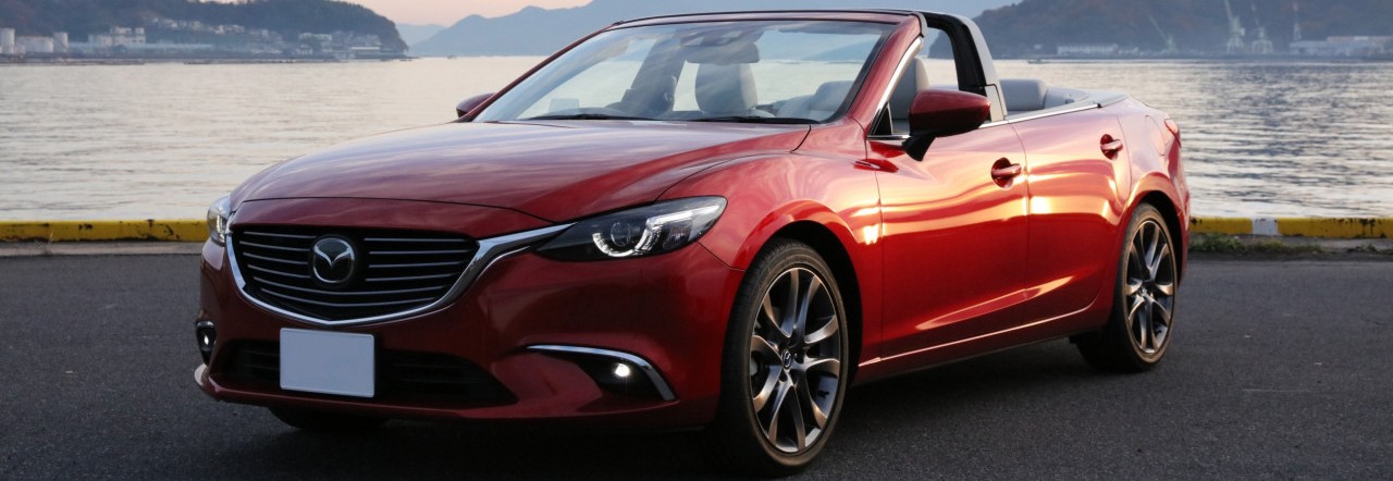 Négyajtós, vászontetős Mazda6. A képek láttán is hajlamosak lehetünk azt mondani, hogy ilyen autó márpedig nincs. Pedig nem számítógépes grafikáról van szó, hanem tényleg létezik a Mazda6 kabrió.